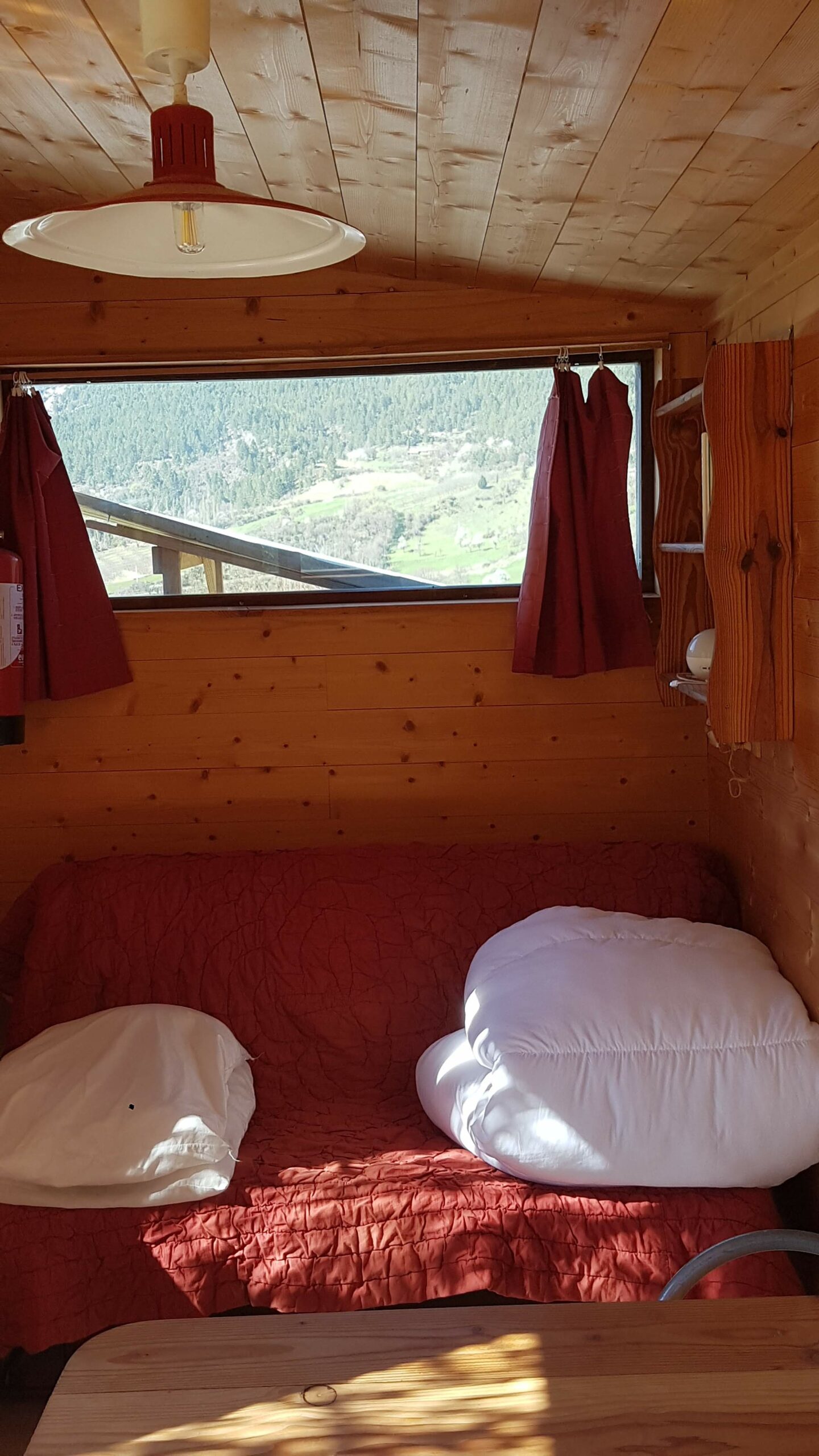 Lit en 140×190, couette et oreillers  : vous n’avez qu’à arriver avec vos draps ou votre duvet (prévoir ici qu’on est en altitude, que les nuits sont toujours fraîches et qu’il n’y a pas de chauffage).